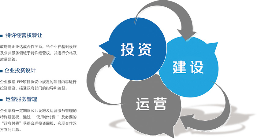 ■ 運營服務管理企業(yè)享有一定期限公共設施及運營服務管理的特許經(jīng)營權,通過“ 使用者付費 ”及必要的“政府付費”獲得合理投資回報,實現(xiàn)合作雙方互利共贏。